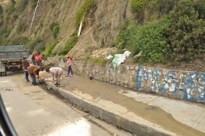 En la autopista se observó caídas de tierra, antes de llegar a la gradas de la Ballivian, e inmediatamente se puso la señalización para evitar accidentes, y obreros empezaron a realizar la limpieza.