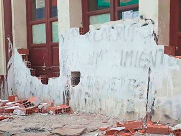 “De la información recogida en el lugar, se tiene que serían personas que tienen cierta afinidad con el Movimiento al Socialismo, vale decir masistas, que en su estado de embriaguez fueron a querer causar daños al frontis de la Alcaldía Municipal”, indicó el suboficial Medina, encargado de la Policía en Chulumani.