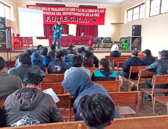 Bernaldo Huanca, secretario Ejecutivo de los Trabajadores en Carne, se refirió a los beneficios de estas capacitaciones, con el fin de cuidar la inocuidad en la distribución de carne: “nosotros vamos a respetar todo el protocolo de seguridad, como siempre lo hemos hecho, y también vamos a difundir la información a nuestros asociados”.
