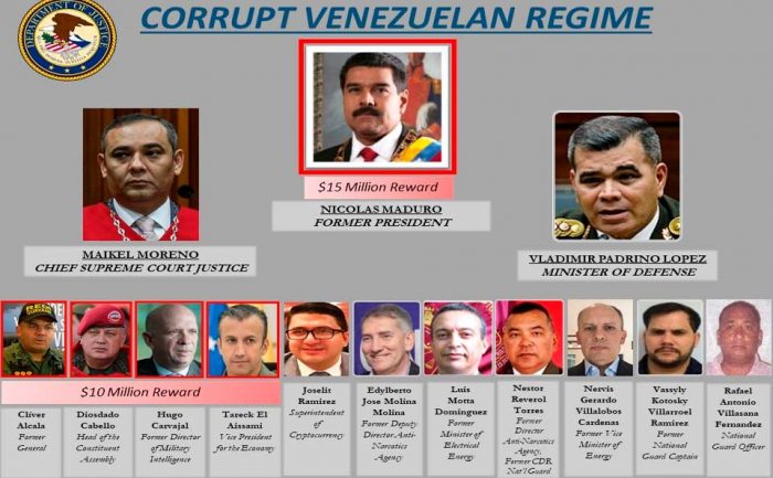 Además de contra Maduro, la administración del presidente Donald Trump presentó cargos contra algunos de los principales representantes del gobierno en disputa de Venezuela.