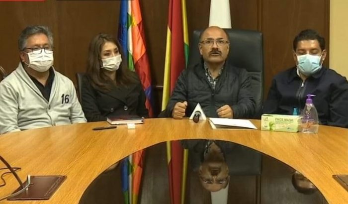 El Gobierno, el Sindicato de Ramas Médicas de la Salud Pública (Sirmes) La Paz y los colegios de profesionales del sector salud en conferencia de prensa manifestaron su decisión de trabajar con el fin de detener la propagación de la pandemia del Coronavirus.