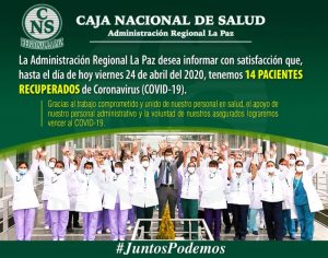 La Caja nacional de Salud Regional La Paz, avanza en su lucha contra el CoronaVirus, #juntos podemos...