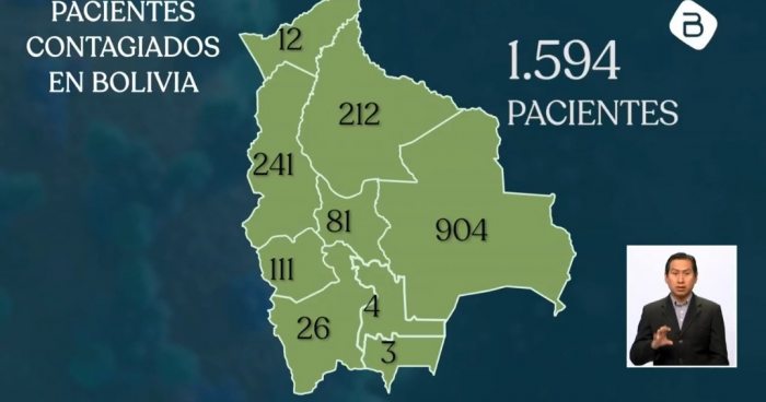 Bolivia reportó este domingo 124 nuevos casos de coronavirus con los que el número de contagiados se eleva a 1.594 y con los 5 decesos el total sube a 76, según informe del Ministerio de Salud. También detalla que los casos sospechosos son 182, los descartados 6.486 y los recuperados 166.