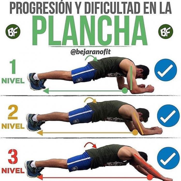 Por ello acudimos a la cuenta de instagram @livefitness24, donde el entrenador personal Felipe Bejarano aconseja la progresión del ejercicio con la plancha isométrica en 3 pasos, debido a que éste es un ejercicio muy completo, que mantiene todo nuestro cuerpo en tensión y nos ayuda a fortalecer los abdominales y, además activamos y trabajamos los glúteos, piernas, espalda y pecho.