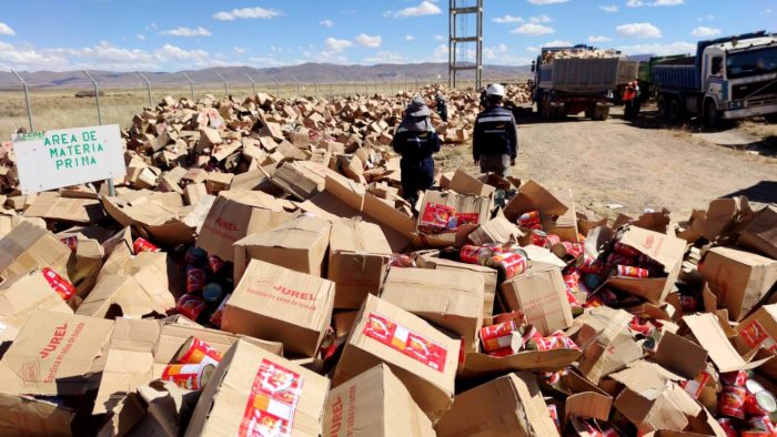 “Dentro del marco normativo de la Ley 615, la Aduana no puede adjudicar a ninguna institución ni pública ni privada productos alimenticios, por lo que se ha procedido a la destrucción de sardinas reetiquetadas presumiblemente de origen chino, en una cantidad de 17 volquetas equivalentes a 138,41 toneladas” informó el gerente General de la Aduana Nacional, Yamil Farah Cabral.