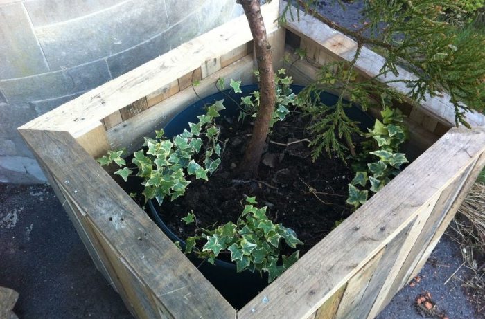 Estos palets como se las denomina, vienen del exterior con objetos importados de electrodomésticos, siendo el perfecto como para realizar estas masetas gigantes con estas maderas, soporta muy bien la humedad, son resistentes al peso. Puedes armar y desarmarlo e incluso darle una manito de barniz.