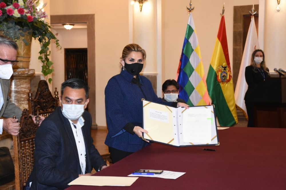 Con la promulgación de una segunda norma, la presidenta Añez reafirmó el Convenio de Protección y Restitución de Bienes del Patrimonio Natural y Cultural entre Bolivia y Costa Rica, por lo que dijo que "este convenio es parte de una importante tradición de respeto entre los pueblos y el reconocimiento de sus patrimonios".