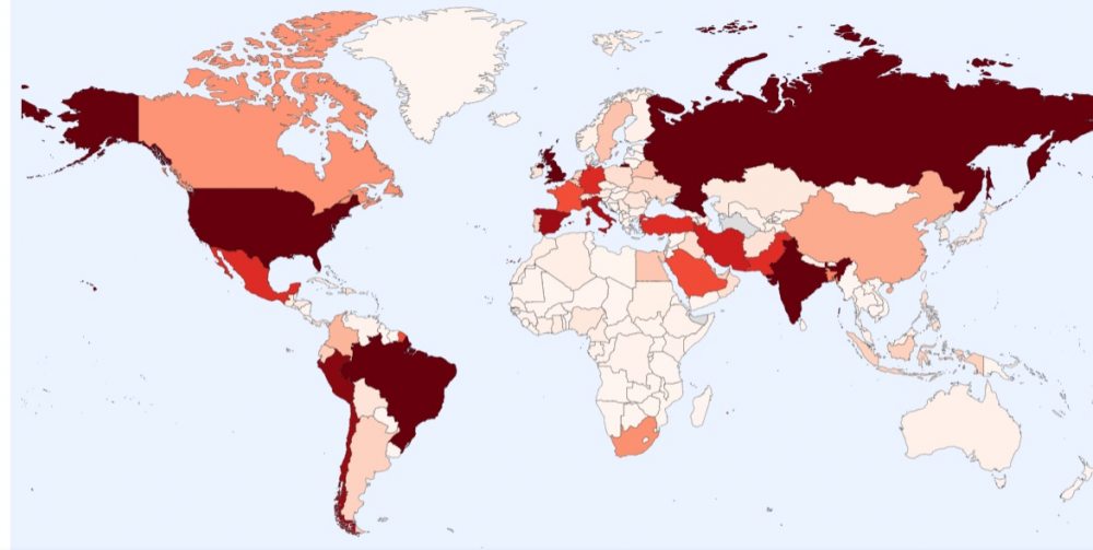 456.183 positivos y 14.476 decesos tras sumar 16.000 nuevos casos, su nuevo récord diario. A continuación, Reino Unido registra 307.682 personas contagiadas y 43.011 muertos, por delante de Perú, con