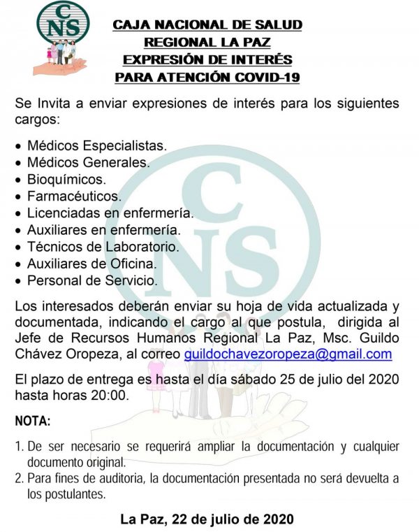Se Invita a enviar expresiones de interés para los siguientes cargos...