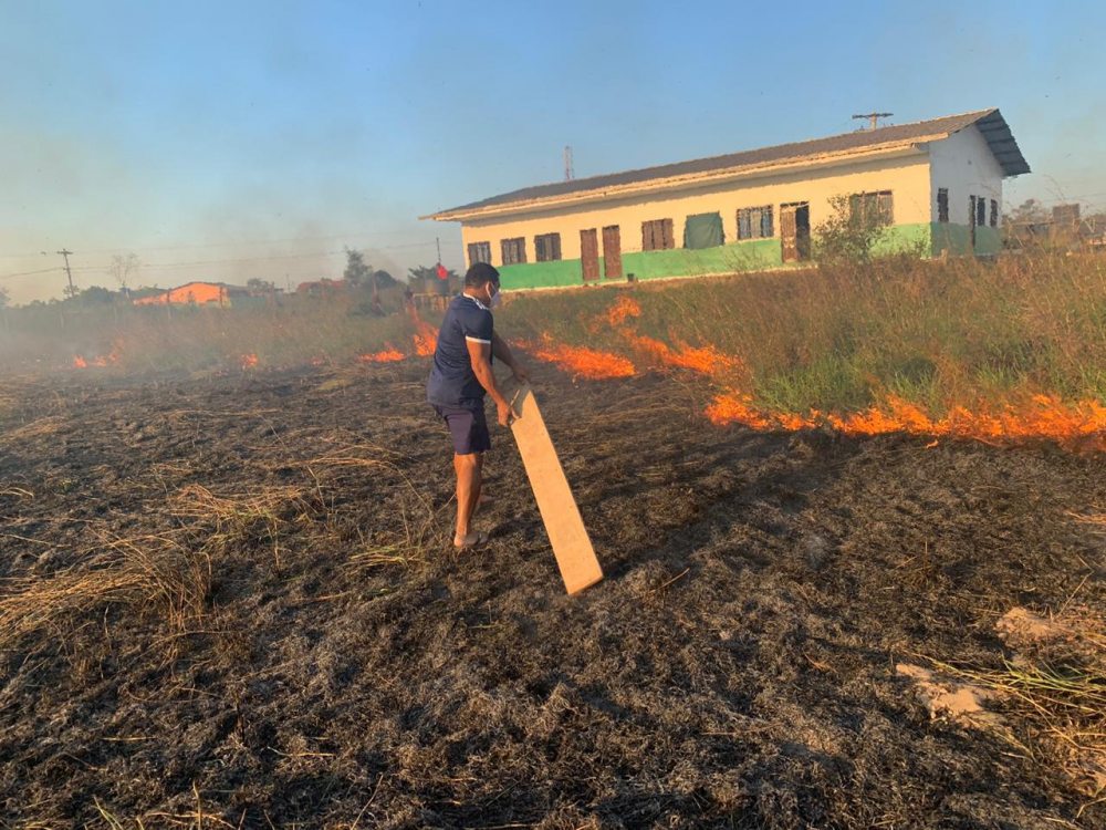 En horas de la tarde, se viralizó un video y fotos del actual titular de la FBF, quien con un palo y con todo lo que encontraba en mano intentó aplacar las llamas del fuego que amenazaba el predio deportivo que tiene el aval de la FIFA.
