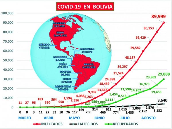 El Ministerio de Salud reportó el domingo que los contagios por por la pandemia de coronavirus se elevaron a 89.999, con los 944 nuevos casos positivos en el país y los decesos suben a 3.640 con 53 registros. Entre los nuevos casos...