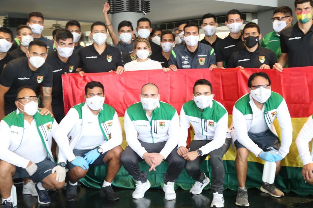 Los integrantes de la Selección Nacional recibieron este miércoles, antes de mediodía, la sorpresiva visita de la Presidente de Bolivia, Jeanine Añez, quien les deseó suerte para los compromisos internacionales de Eliminatorias mundialistas Catar 2022, además les dijo que tienen todo su respaldo.