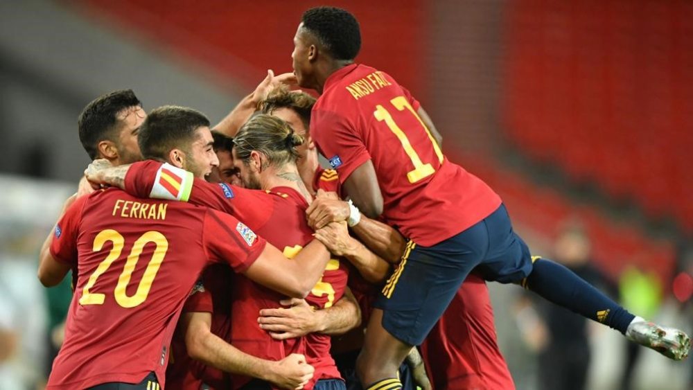 España y Alemania, que sellaron un empate el jueves, tuvieron suerte dispar este domingo en Liga de las Naciones, ya que la 'Mannschaft' tropezó en Suiza (1-1), mientras que la 'Roja', con su precoz goleador Ansu Fati, avasalló 4-0 a Ucrania y dio un paso más a semifinales de la competición.