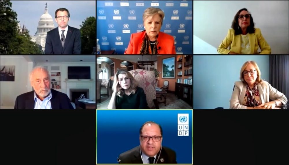 La recuperación económica post Covid-19 y el futuro del contrato social en las Américas fue el tema central del primer panel moderado por Luis Felipe López Calva, director regional para América Latina y el Caribe del Programa de las Naciones Unidas para el Desarrollo (PNUD), en el que participaron Rebeca Grynspan, secretaria general Iberoamericana (SEGIB); Joseph E. Stiglitz, Premio Nobel de Economía y profesor de la Universidad de Columbia; Carmen Reinhart, vicepresidenta y economista Jefe del Grupo del Banco Mundial; Paula Santilli, directora ejecutiva de PepsiCo Latinoamérica; y Alicia Bárcena, secretaria ejecutiva de la Comisión Económica para América Latina y el Caribe (CEPAL).