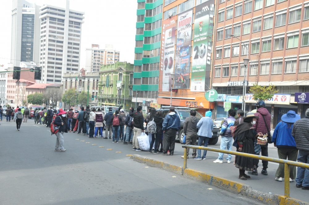 La venta de comida en la calle, particularmente en la plaza Eguino, era una muestra clara de qué no se debe hacer cuando de medidas de bioseguridad se habla; en los “agachaditos” todos estaban apretados en menos de dos metros de diámetro disfrutando de un sillpancho.