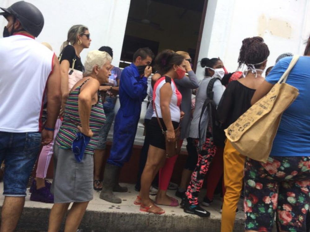 La fila en la estrecha calle está custodiada por policías cuyos deberes manifiestan el estado de escasez que vive Cuba: fuera de velar por el distanciamiento deben evitar que haya venta de turnos en la cola, que los ciudadanos no se aglomeren en el sitio poco antes de la apertura y que nadie pernocte allí o en lugares aledaños.