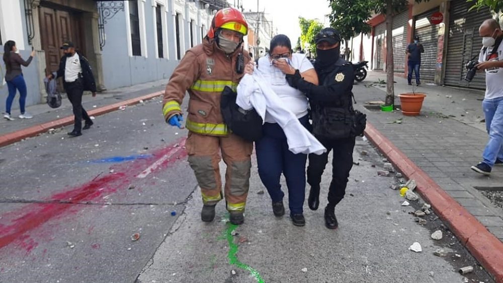La prensa presente en la multitudinaria manifestación en Ciudad de Guatemala ha informado de que los policías dispararon gases lacrimógenos directamente a la gente, en lugar de lanzarlos al suelo, como dictan los protocolos.