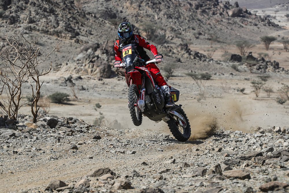El defensor del título, el estadounidense Ricky Brabec (Honda), finalizó a 18:32 del ganador después de perderse al comienzo de la especial, mientras que su compañero Joan Barreda se dejó más de un cuarto de hora (15:39), lo que les obligará a salir al ataque este lunes.