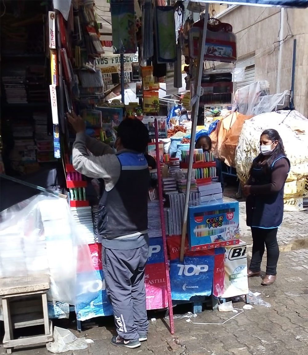 Contrariamente a lo que ocurría en años pasados, la avenida Tumusla y calles aledañas se encuentran casi vacías y el requerimiento de material escolar prácticamente está reducido al mínimo. Consultados los vendedores sobre la venta, manifestaron su preocupación, porque las clases serán virtuales y sus ventas están muy bajas, aunque no pierden la esperanza de una mejor situación.