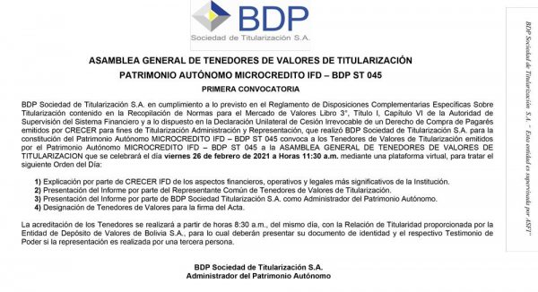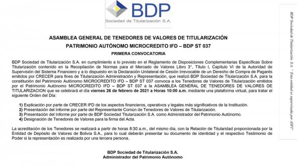 ASAMBLEA GENERAL DE TENEDORES DE VALORES DE TITULARIZACIÓN