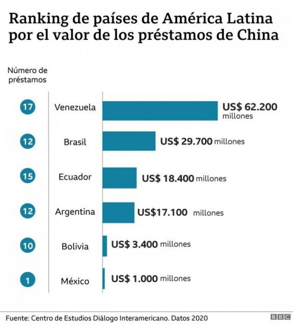 De acuerdo con un reporte del centro de análisis Diálogo Interamericano y la Universidad de Boston, por primera vez en 15 años los dos mayores bancos institucionales chinos –el Banco de Desarrollo y el Banco de Exportación e Importación– no hicieron nuevos préstamos soberanos a América Latina en 2020.