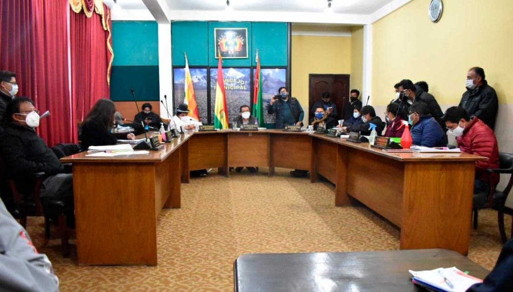 La actual gestión municipal inició con 11 concejales, 6 de Unidad Nacional, 4 del Movimiento Al Socialismo y 1 de Soberanía y libertad; con el pasar de los años y por diferentes circunstancias muchos concejales fueron reemplazados por suplentes o por otros titulares. La gestión legislativa municipal 2015-2021 concluye con 10 concejales. El último en asumir como autoridad fue Javier Jarro, Ex dirigente de Cocedal, quien funge como vicepresidente en reemplazo de Juanito Angulo, actual diputado nacional por el Movimiento Al Socialismo.