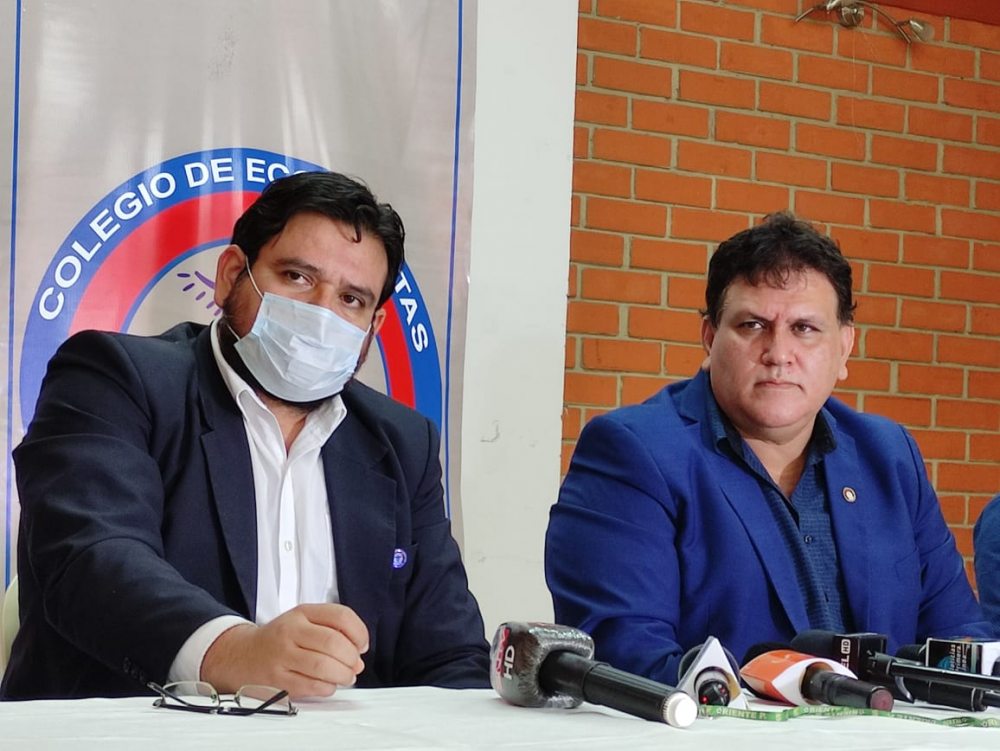El presidente del Colegio de Economistas de Santa Cruz, Fernando Vargas Rodas, y el titular del Colegio Nacional de Economistas de Bolivia, Jorge Akamine Toledo, fueron los encargados de presentar el pronunciamiento, y alertaron que se ve una amenaza a la cadena productiva.