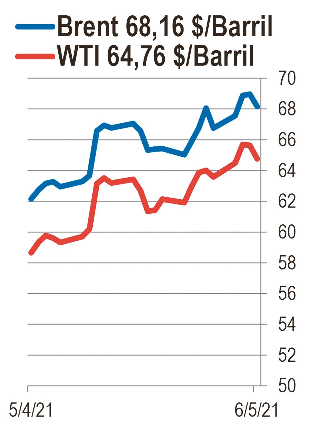 India es el tercer importador mundial de petróleo y su pésimo manejo de la pandemia ha resultado en fuertes fluctuaciones en su demanda. Esta semana India anunció un fuerte aumento den su demanda en mayo, pero los expertos no creen que esta sea una señal de nuevos niveles duraderos. Mientras tanto en Estados Unidos, el segundo mayor importador, el mercado se alista para una semana de gran consumo por un feriado nacional en el que muchos viajan. |
